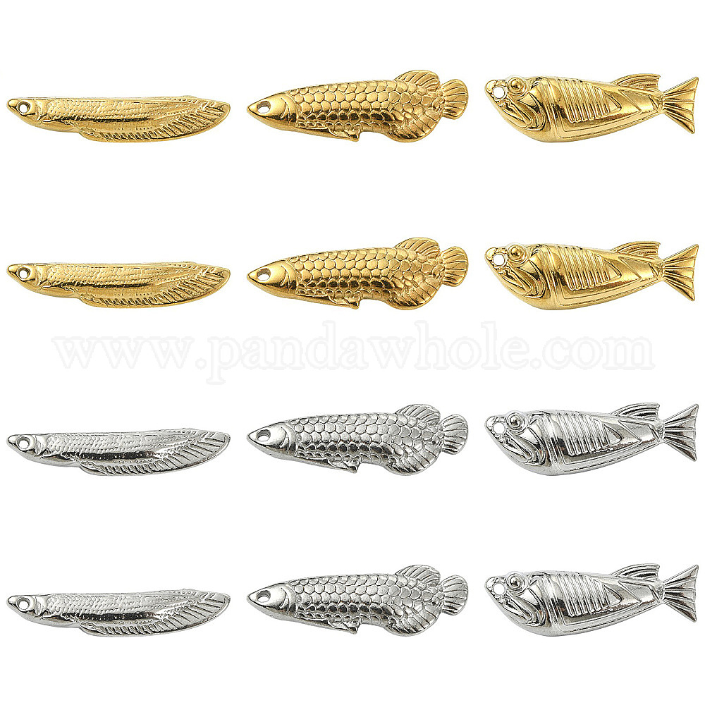 12 шт. 6 цвета 304 подвески из нержавеющей стали, рыбы прелести