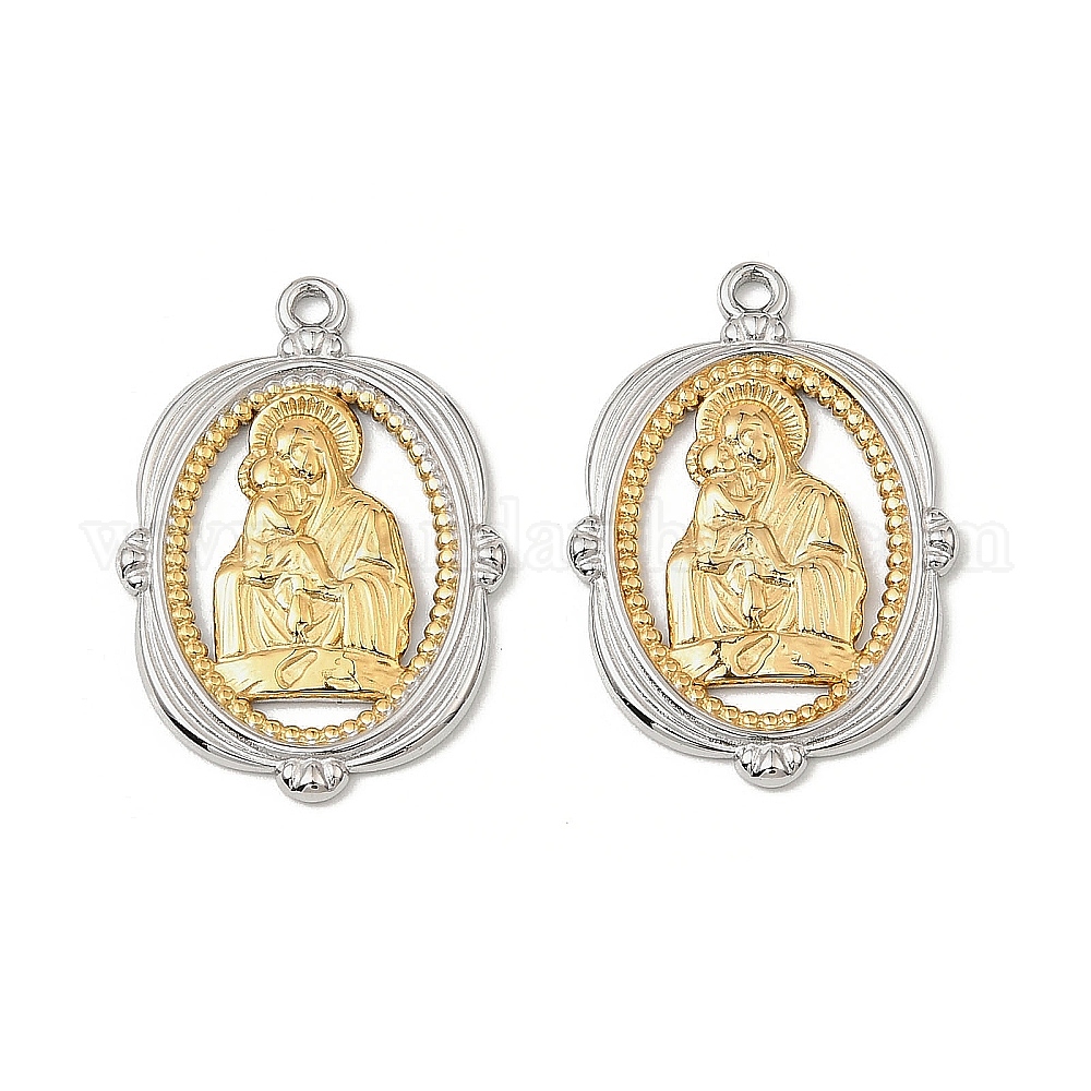 • Золотой & Цвет Нержавеющей Стали 304 подвески из нержавеющей стали, овальные с рисунками " virgin mary", без свинца и без кадмия, золотые и нержавеющая сталь цвет, 27x19x2 мм, отверстие : 1.6 мм