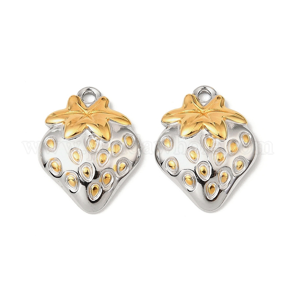 • Золотой & Цвет Нержавеющей Стали 304 подвески из нержавеющей стали, клубника, без свинца и без кадмия, золотые и нержавеющая сталь цвет, 21x16.5x4 мм, отверстие : 1.8 мм