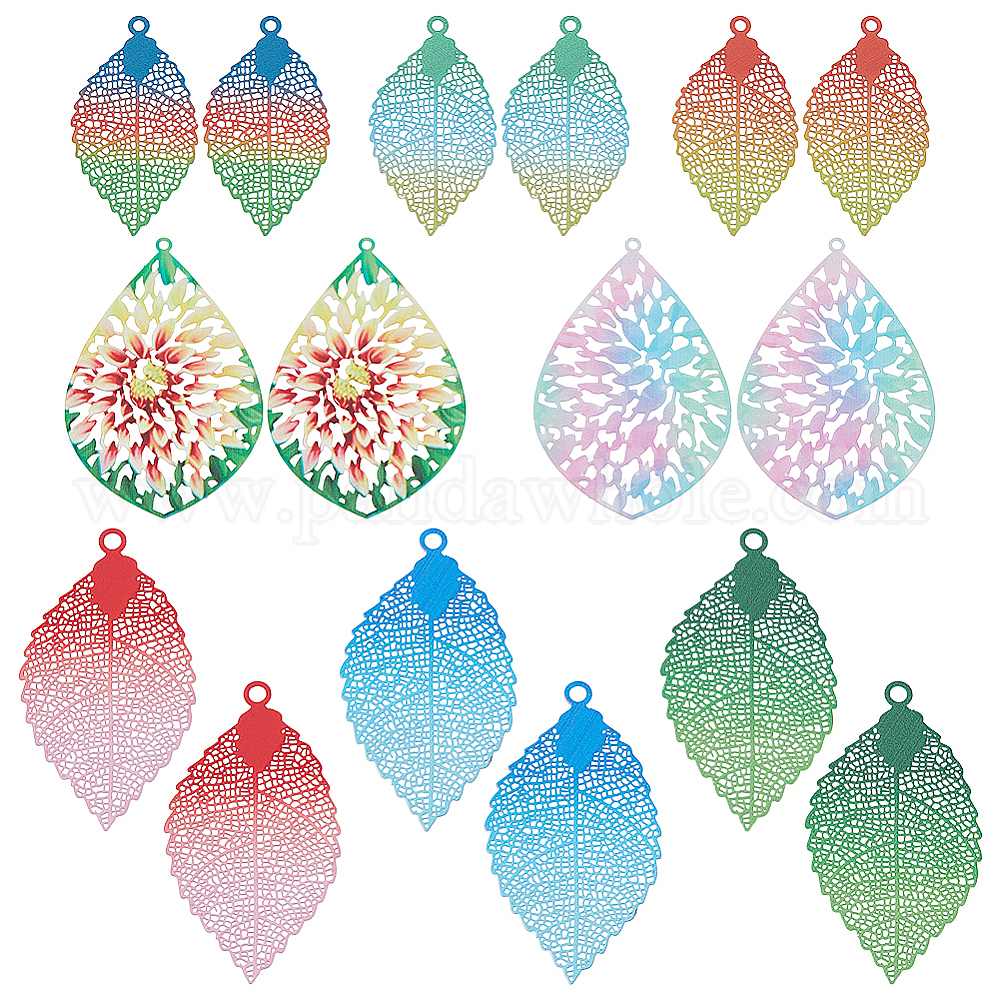 16 шт. 8 цвета 201 украшения из нержавеющей стали с травлением металла подвески, лист