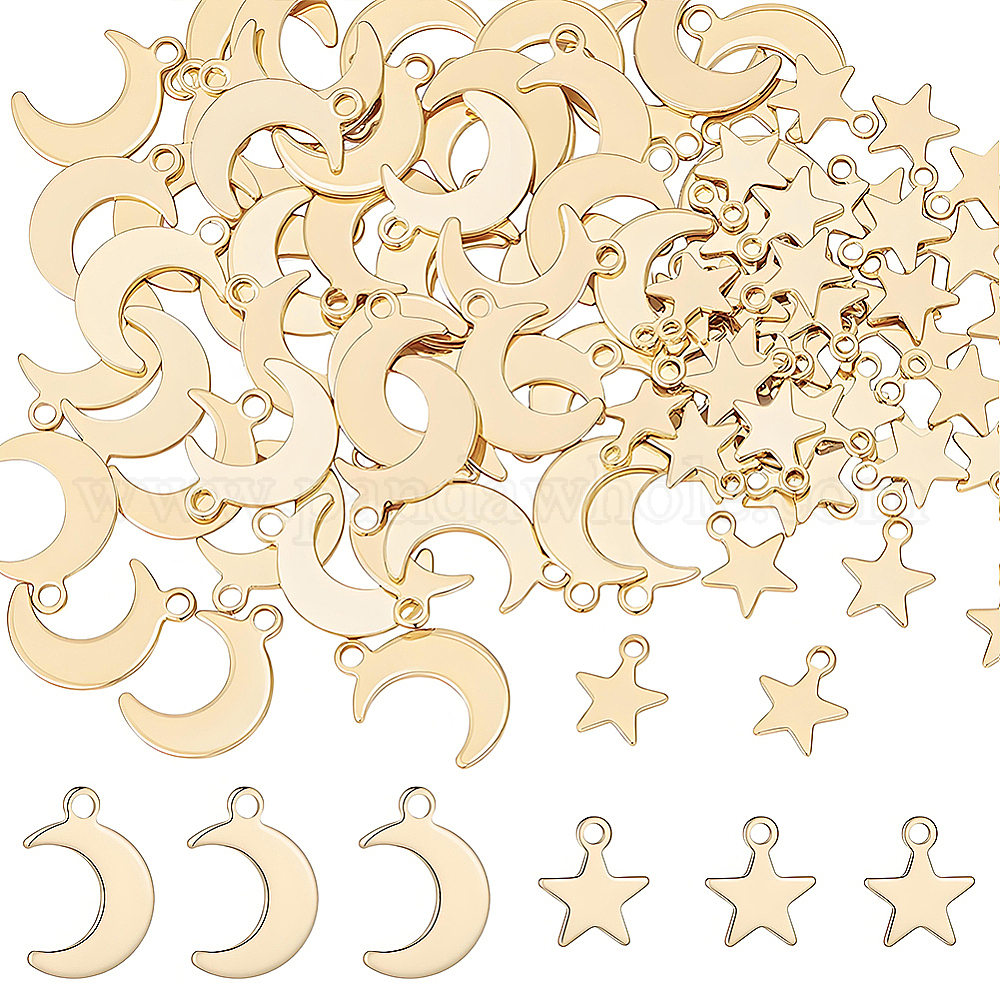 100шт. 2 стильный набор подвесок из нержавеющей стали, звезда и луна