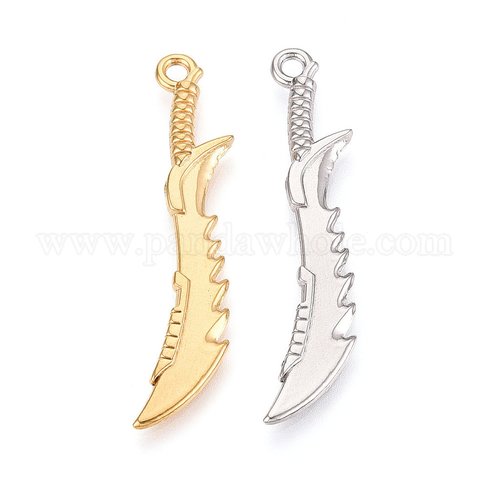 • Настоящее золото 18K 304 подвески из нержавеющей стали, палаш, ионное покрытие (ip), реальный 18 k позолоченный, 48x10x3 мм, отверстие : 2.2 мм