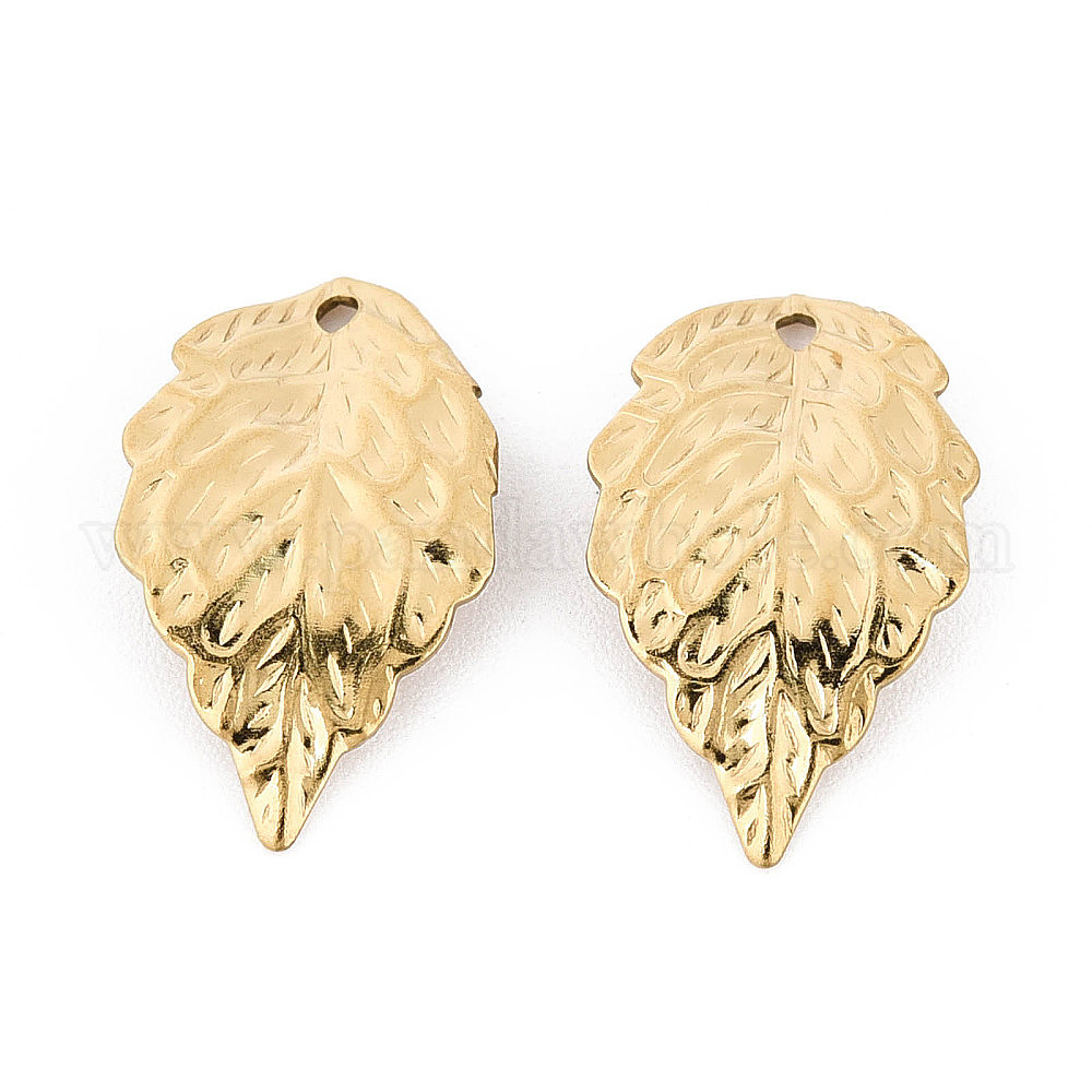 • Настоящее золото 18K 304 подвески из нержавеющей стали лист, ионное покрытие (ip), реальный 18 k позолоченный, 17x10x3 мм, отверстие : 1 мм