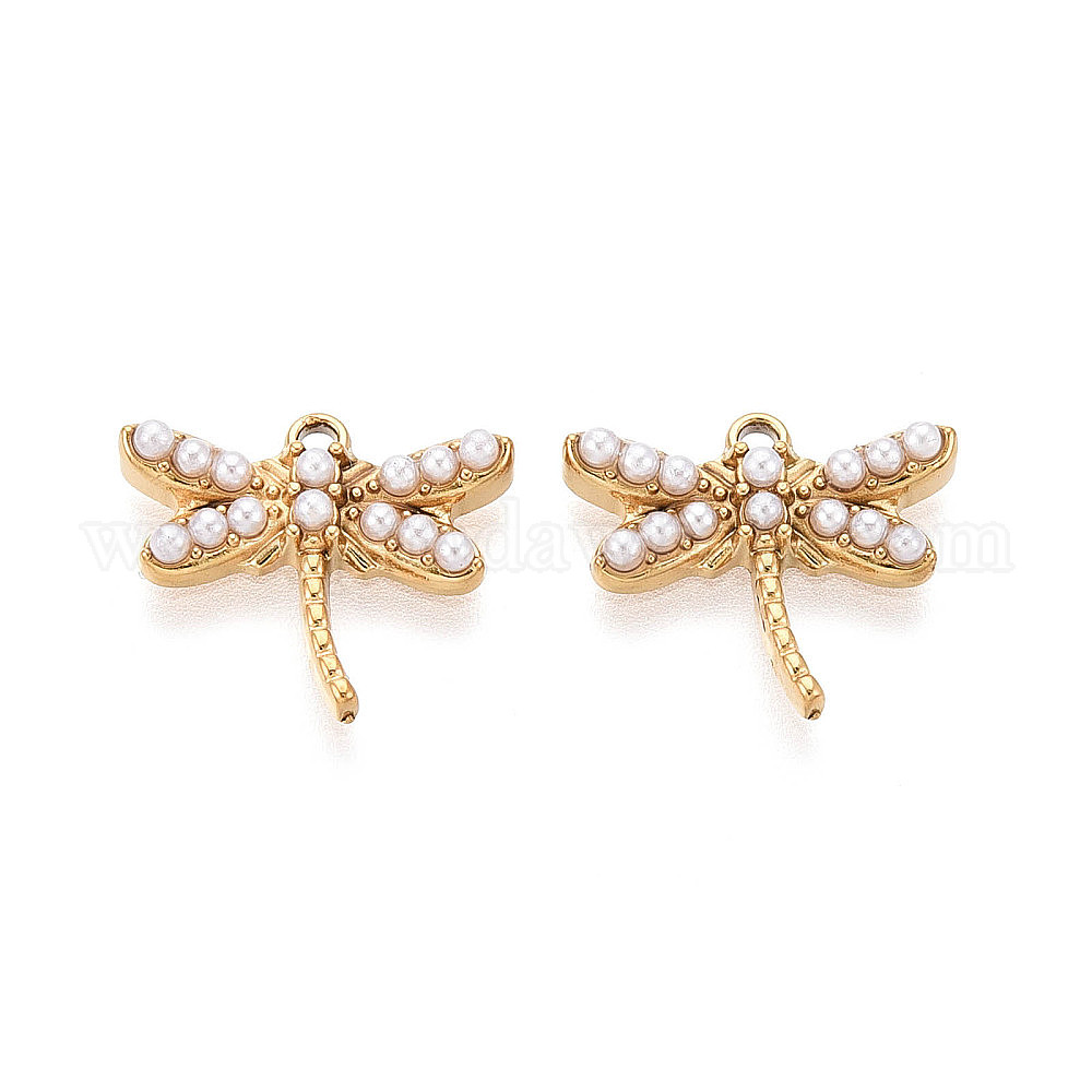304 подвески в виде стрекоз из нержавеющей стали и искусственного жемчуга ABS, ионное покрытие (ip)