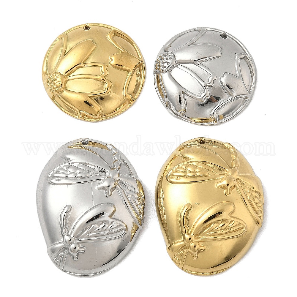 • Настоящее золото 18K 304 подвески из нержавеющей стали, плоские круглые с цветком, ионное покрытие (ip), реальный 18 k позолоченный, 24x5 мм, отверстие : 1.2x2 мм