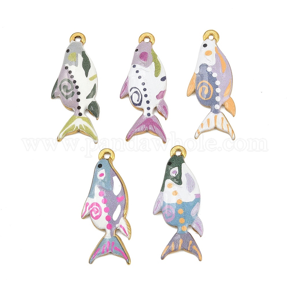 Печатные 304 подвески из нержавеющей стали, рыба, вакуумное покрытие pvd, реальный 18 k позолоченный