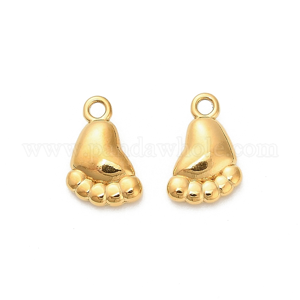 • Настоящее золото 18K 304 прелести нержавеющей стали, маленькая ножка, ионное покрытие (ip), реальный 18 k позолоченный, 10.5x6.5x2.5 мм, отверстие : 1.2 мм