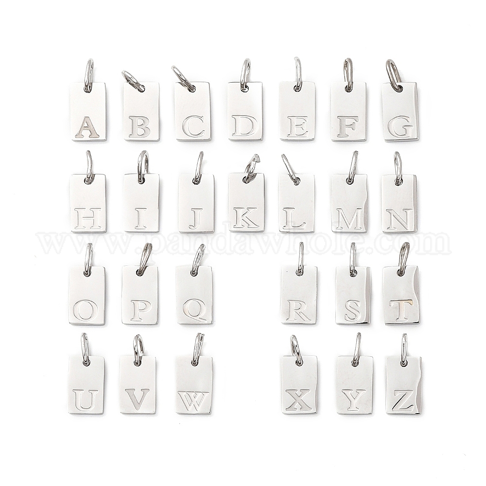 26шт. 304 набор подвесок из нержавеющей стали, прямоугольник с буквой a ~ z, с целью перехода в кольце