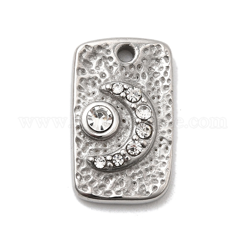 Кованые 304 подвески из нержавеющей стали, прямоугольник с лунным шармом, со стразами