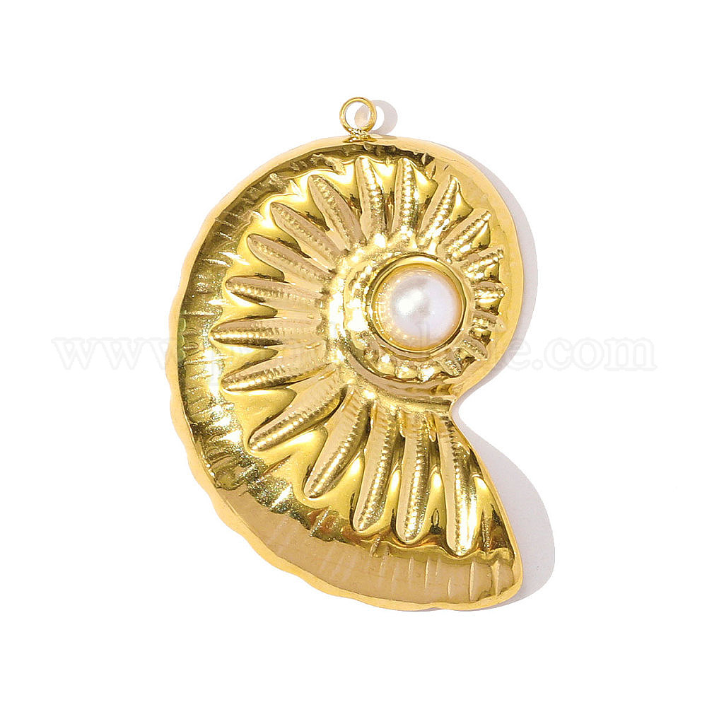 • Настоящее золото 18K 304 подвески из нержавеющей стали, подвески в форме раковины, с имитацией жемчуга, ионное покрытие (ip), реальный 18 k позолоченный, 40x27 мм