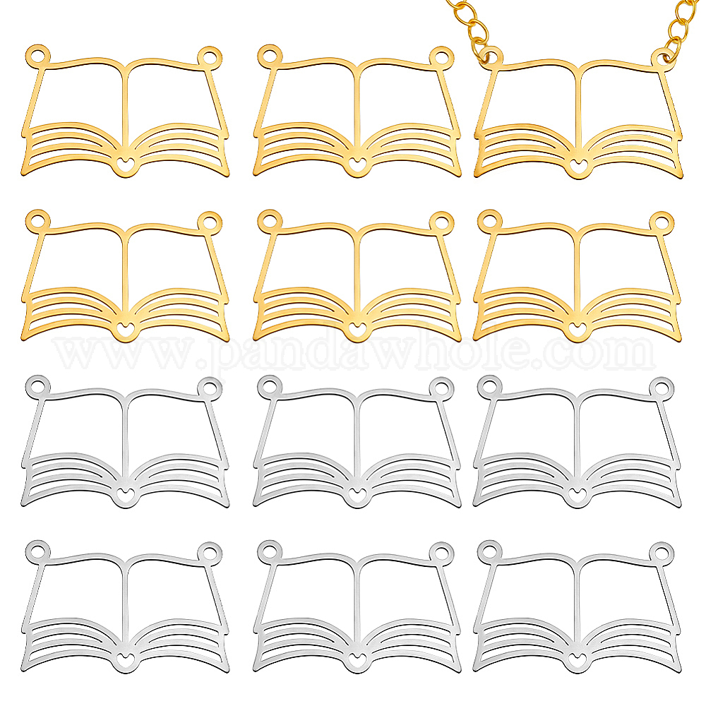 12 шт. 2 цвета 201 подвески из нержавеющей стали, лазерная резка, книжное очарование