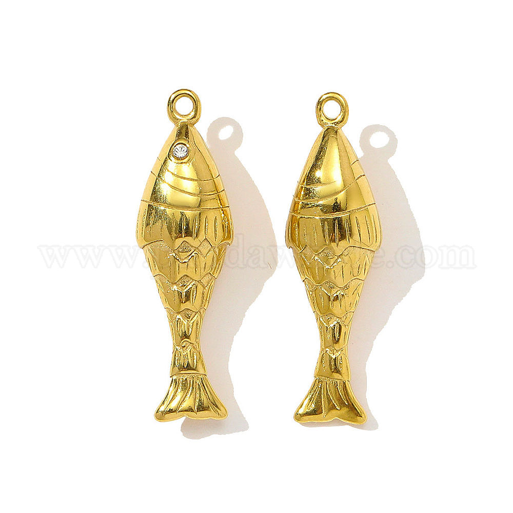 304 из нержавеющей стали горный хрусталь подвески, рыбы прелести, ионное покрытие (ip), реальный 18 k позолоченный