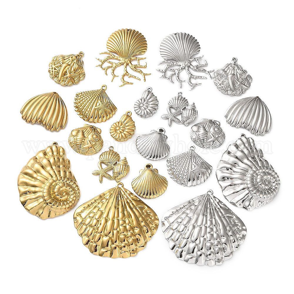 • Настоящее золото 18K 10 шт. 304 подвески из нержавеющей стали, формы раковины, ионное покрытие (ip), реальный 18 k позолоченный, 20~46x13~47x3.5~5 мм, отверстие : 1.2~2 мм