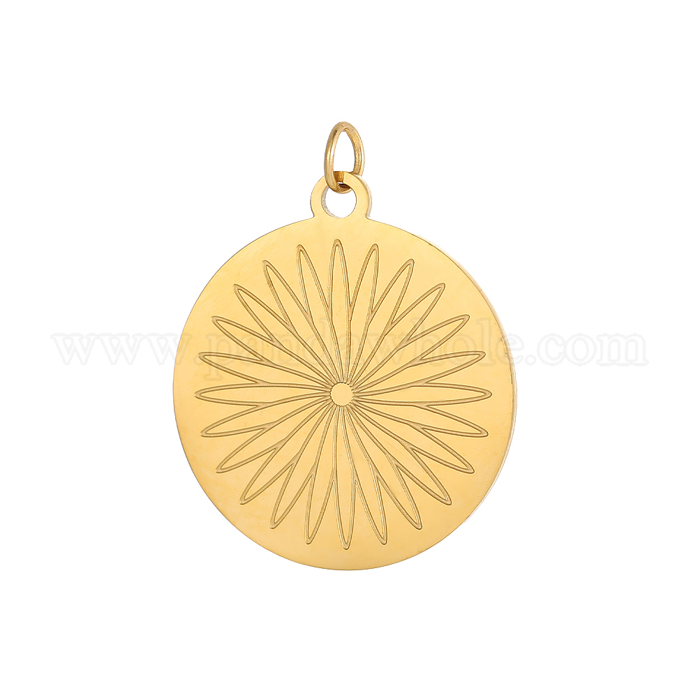 • Настоящее золото 14K Плоские круглые подвески 304 подвески из нержавеющей стали, ионное покрытие (ip), реальный 14 k позолоченный, 23x20 мм
