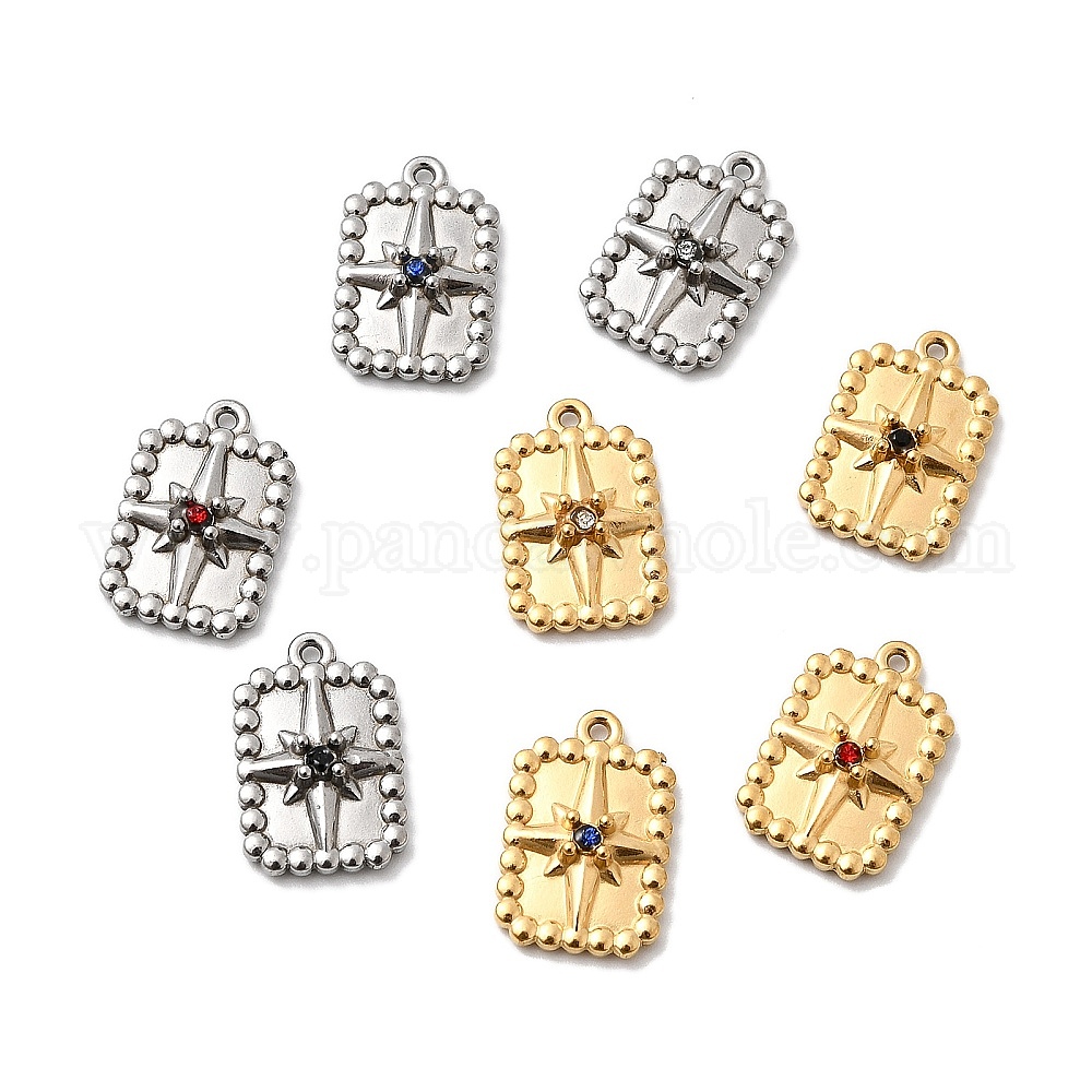 304 подвески из нержавеющей стали с микропаве из стразов, прямоугольник со звездным узором