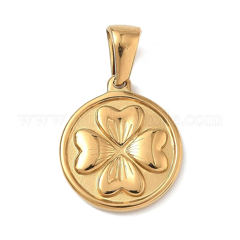 304 подвески из нержавеющей стали, плоские круглые с клевером, ручная полировка, ионное покрытие (ip)