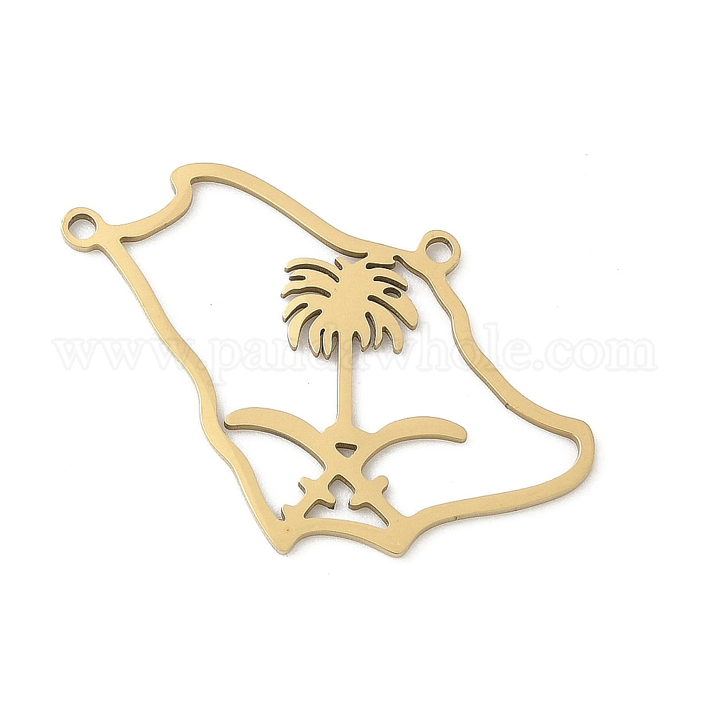• Настоящее золото 18K 201 подвески из нержавеющей стали для лазерной резки, очарование карты Саудовской Аравии, ионное покрытие (ip), реальный 18 k позолоченный, 23x33x1 мм, отверстие : 1.4 мм