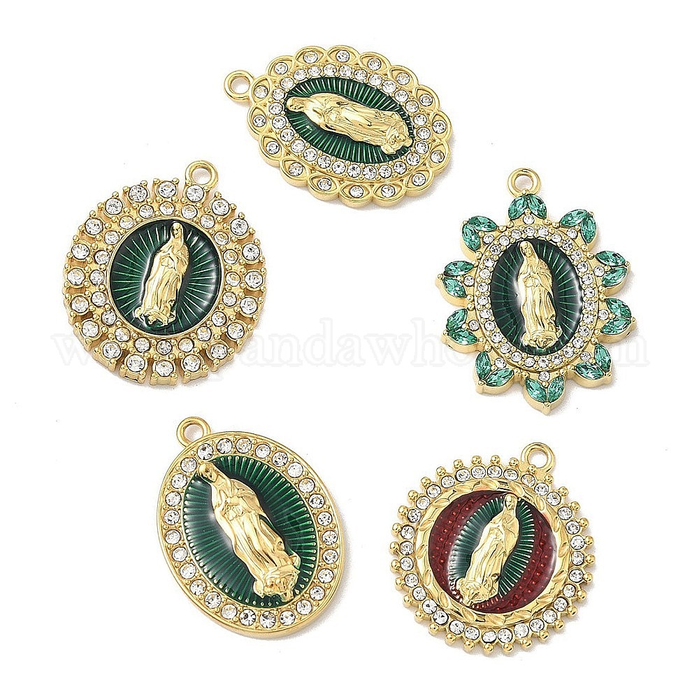 • Oval 304 эмалированная нержавеющая сталь с подвесками из хрустальных страз, вакуумное покрытие pvd, реальный 18 k позолоченный, овал с подвеской девы марии, 24.5x17x3.5 мм, отверстие : 1.6 мм