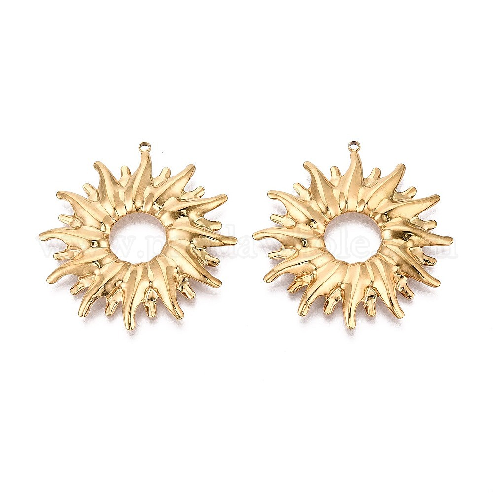 • Настоящее золото 18K 304 из нержавеющей стали большие кулоны, очарование солнца, ионное покрытие (ip), реальный 18 k позолоченный, 61x57.5x4.8 мм, отверстие : 2.5 мм