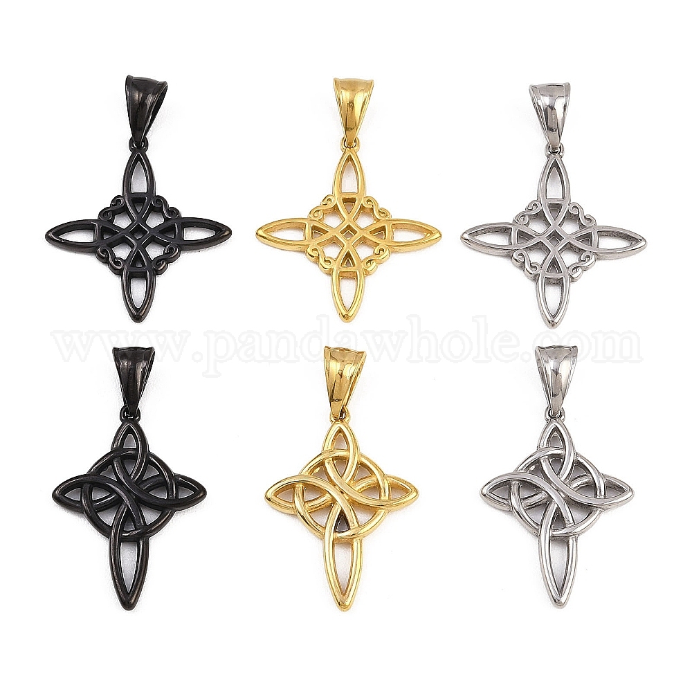 • Нержавеющая Сталь Цвет 304 подвески из нержавеющей стали, очарование тройственного узла, цвет нержавеющей стали, 31x28.5x2 мм, отверстие : 8.8x4.5 мм