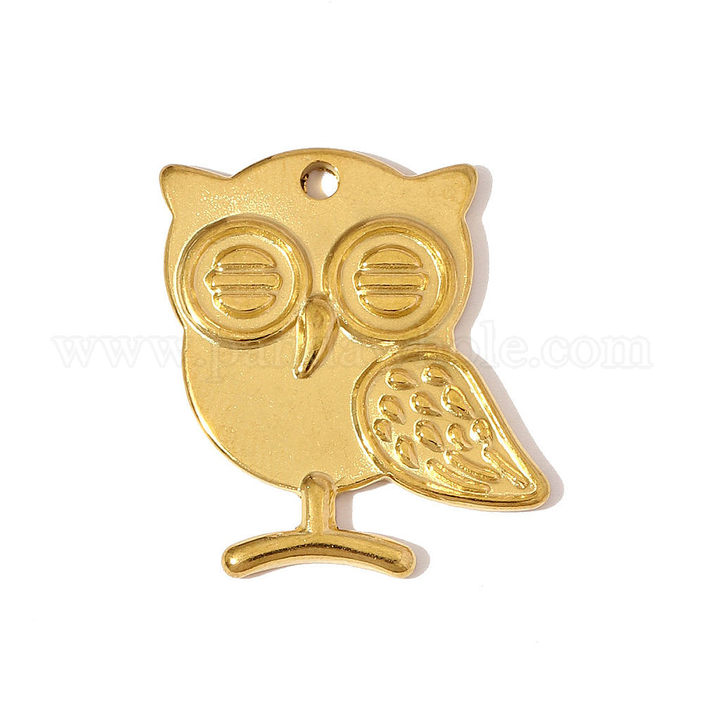 • Настоящее золото 18K 304 подвески из нержавеющей стали, сова прелести, ионное покрытие (ip), реальный 18 k позолоченный, 25x19 мм
