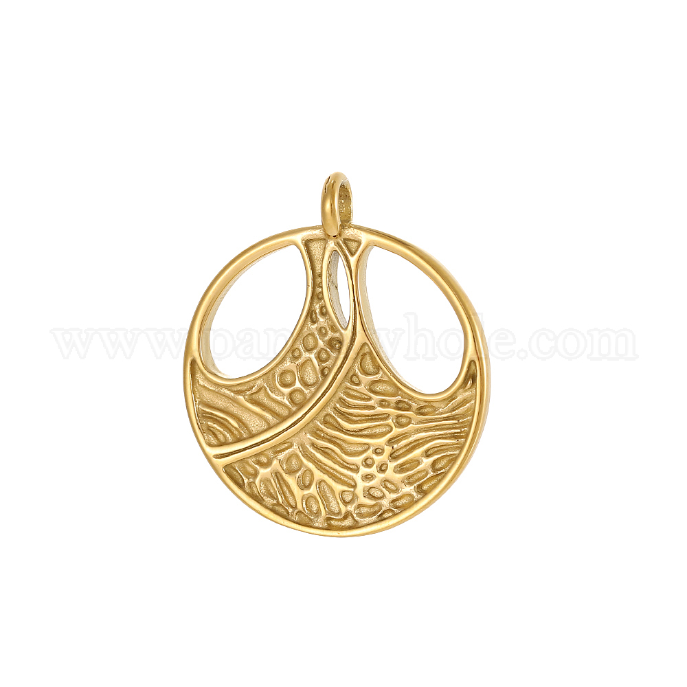 • Настоящее золото 18K 304 подвески из нержавеющей стали, плоские круглые прелести, ионное покрытие (ip), реальный 18 k позолоченный, 30x26 мм