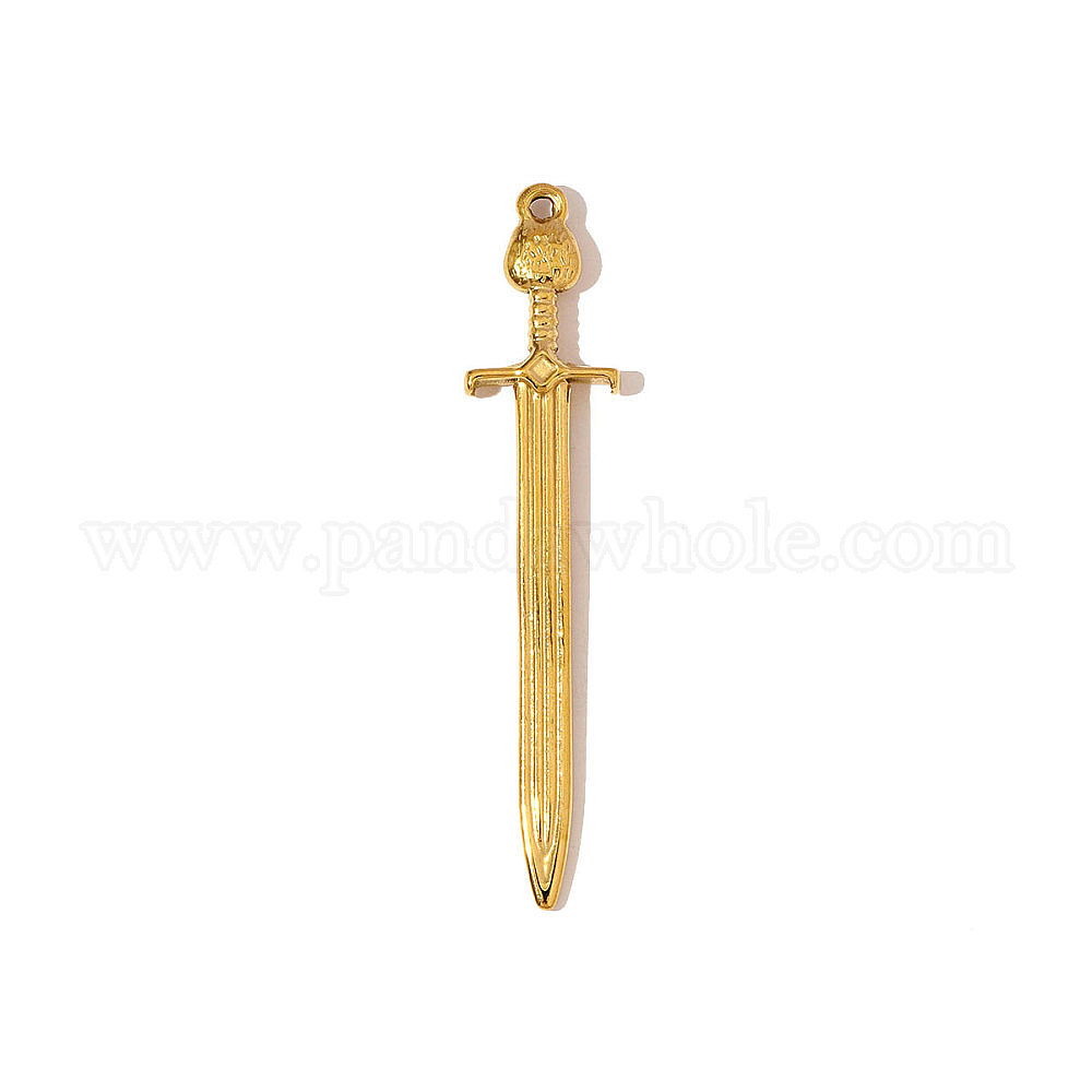 • Настоящее золото 18K 304 из нержавеющей стали большие кулоны, меч прелести, ионное покрытие (ip), реальный 18 k позолоченный, 66x14 мм
