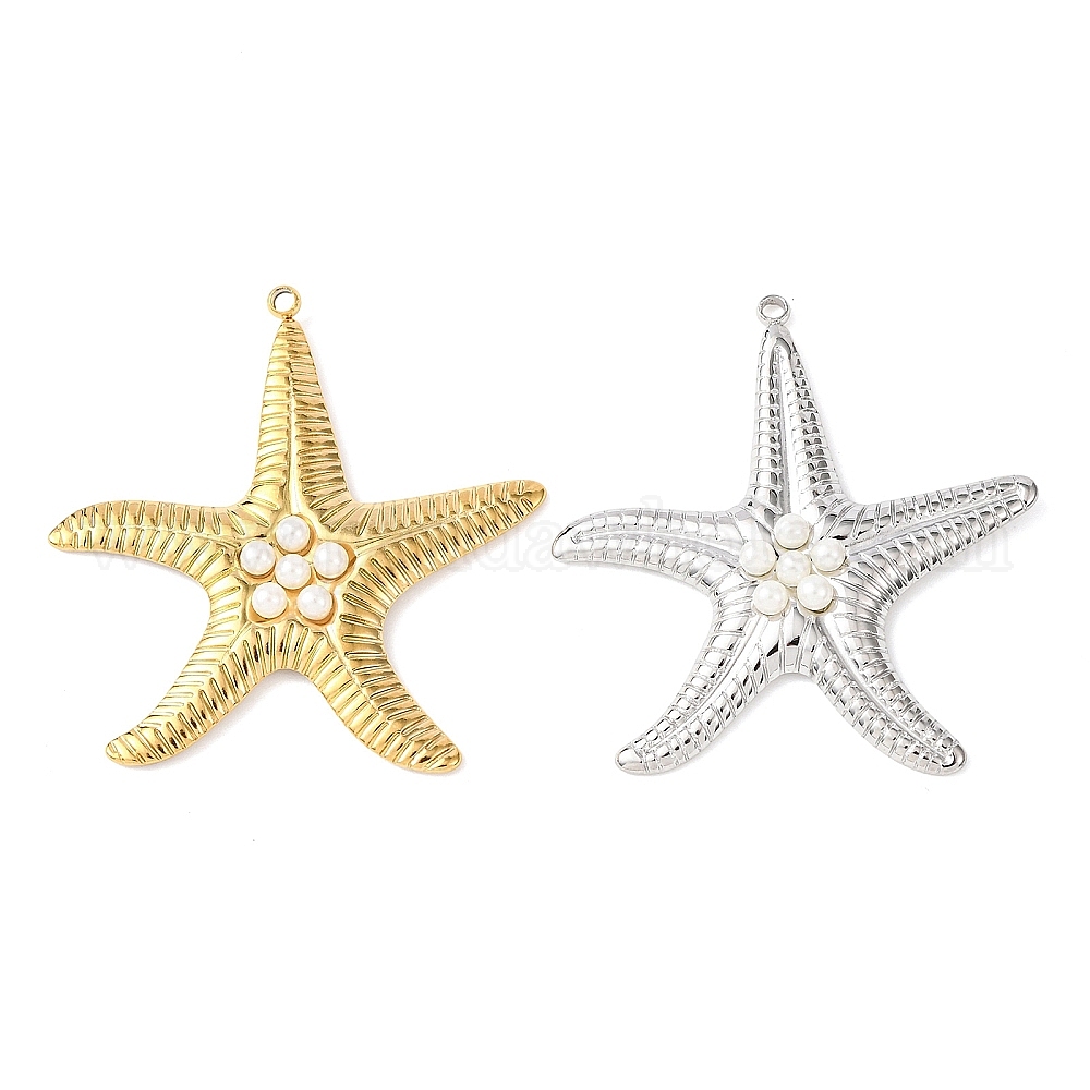 304 подвески из нержавеющей стали, прелести морская звезда, с пластиковой имитационной жемчужиной, белые