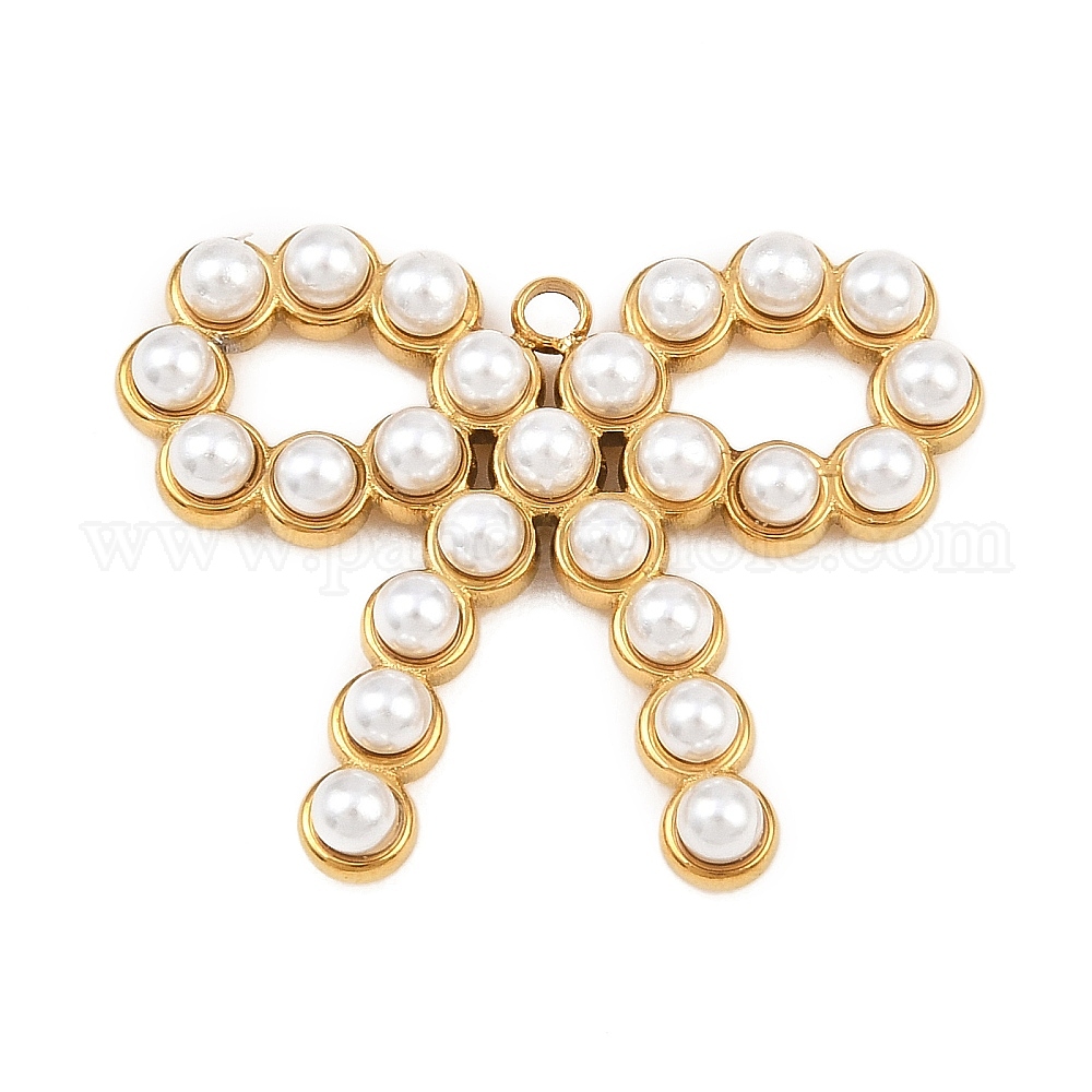 304 подвески из нержавеющей стали, подвески-бантики с имитацией жемчуга из АБС-пластика, ионное покрытие (ip), белые