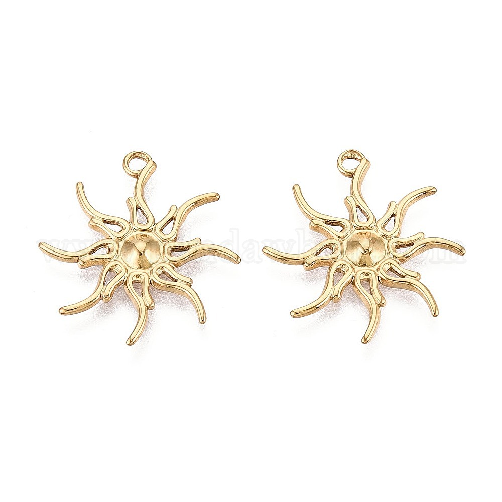 304 подвески из нержавеющей стали, очарование солнца, за половину пробурено бисера, ионное покрытие (ip)