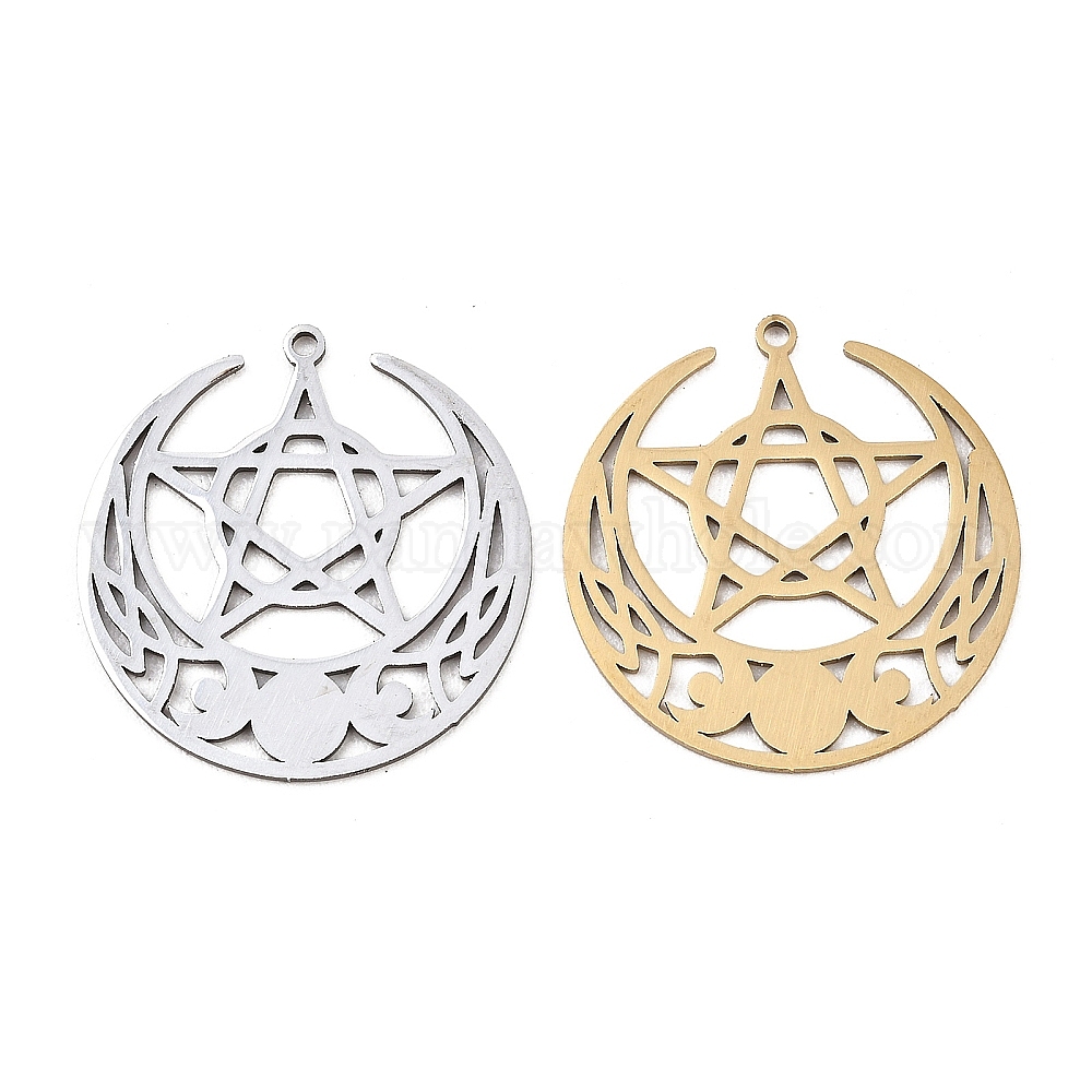 • Золотой 201 подвески из нержавеющей стали, луна со звездным шармом, золотые, 27.5x26.5x1 мм, отверстие : 1.4 мм