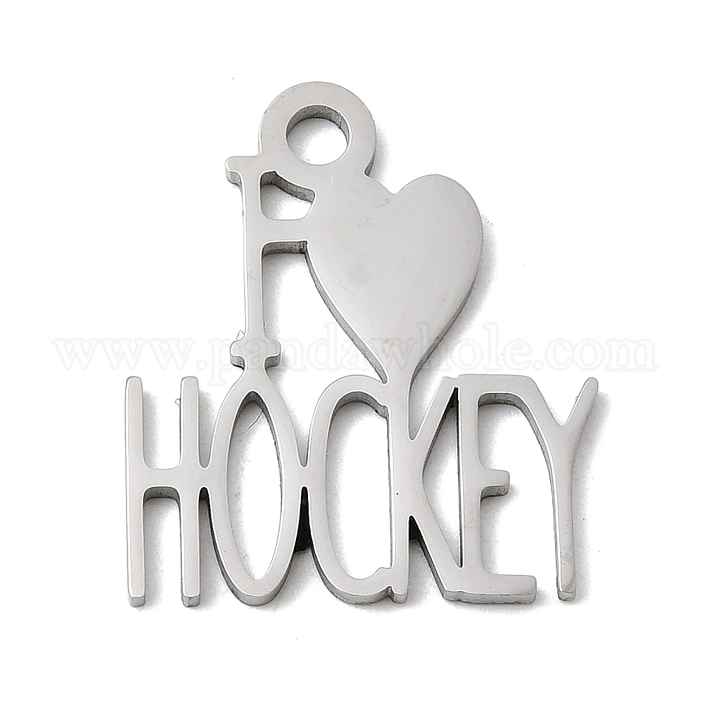 • Нержавеющая Сталь Цвет 304 подвески из нержавеющей стали, я люблю хоккейное обаяние, без свинца, без кадмии и без никеля, цвет нержавеющей стали, 22.5x19.5x1 мм, отверстие : 2.5 мм