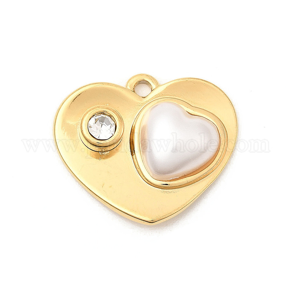 • Настоящее золото 18K 304 из нержавеющей стали горный хрусталь подвески, сердце прелести, с abs имитационными жемчужными бусинами , ионное покрытие (ip), реальный 18 k позолоченный, 18.5x21x5 мм, отверстие : 1.6 мм