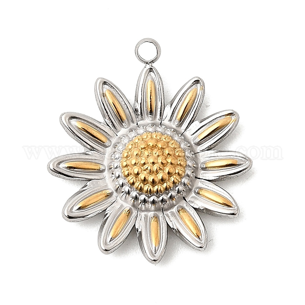 • Золотой & Цвет Нержавеющей Стали 304 подвески из нержавеющей стали, очарование подсолнуха, два тона, золотые и нержавеющая сталь цвет, 21.5x19x3.7 мм, отверстие : 1.6 мм