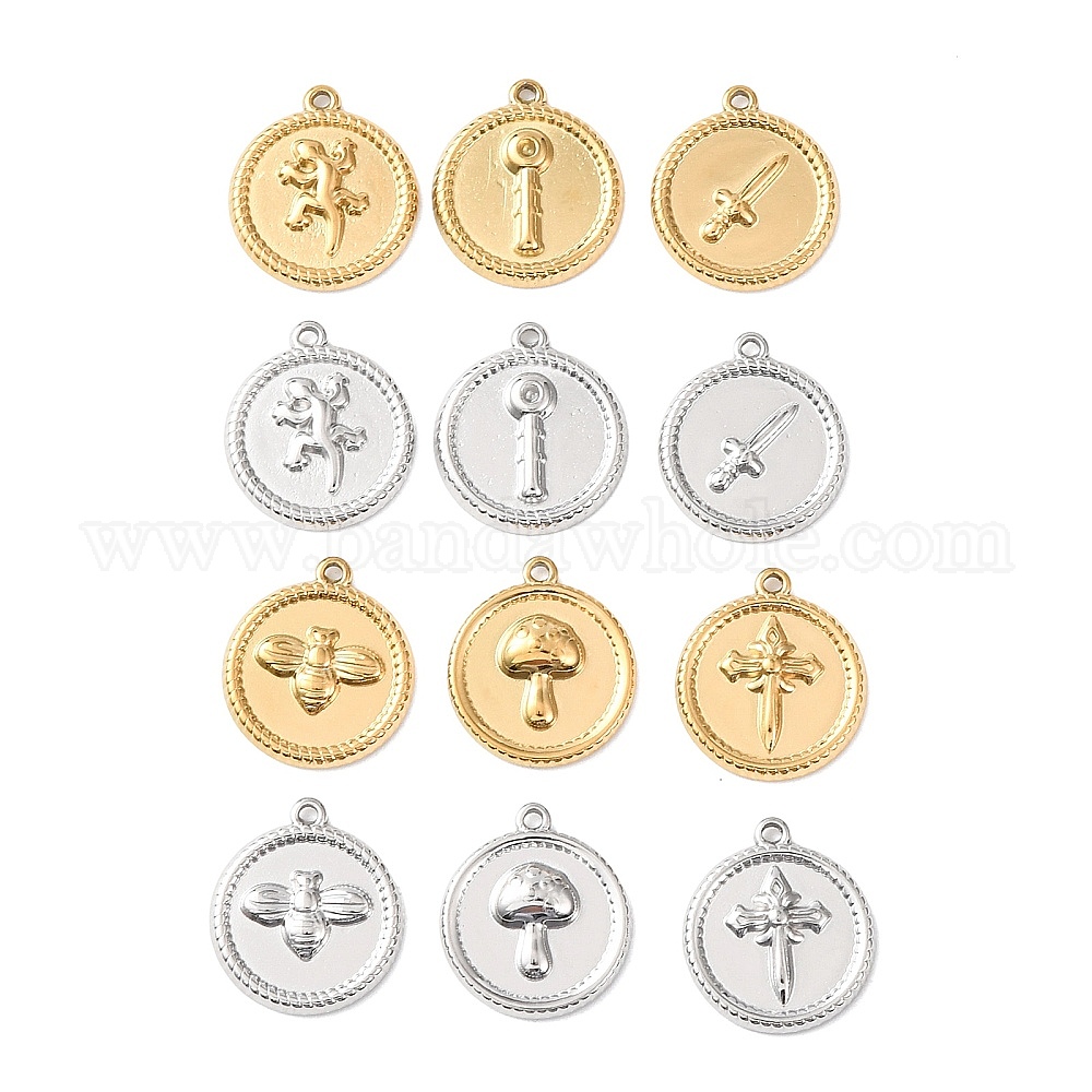 • Bees 304 подвески из нержавеющей стали, плоско-круглые, ионное покрытие (ip), реальный 18 k позолоченный, Пчелы, 17.5x15.5x2.5 мм, отверстие : 1.2 мм