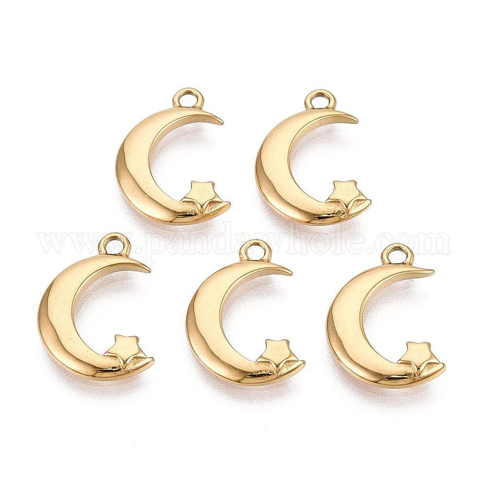 • Золотой 304 подвески из нержавеющей стали, луна со звездным шармом, золотые, 15.5x11x2 мм, отверстие : 1.5~1.6 мм