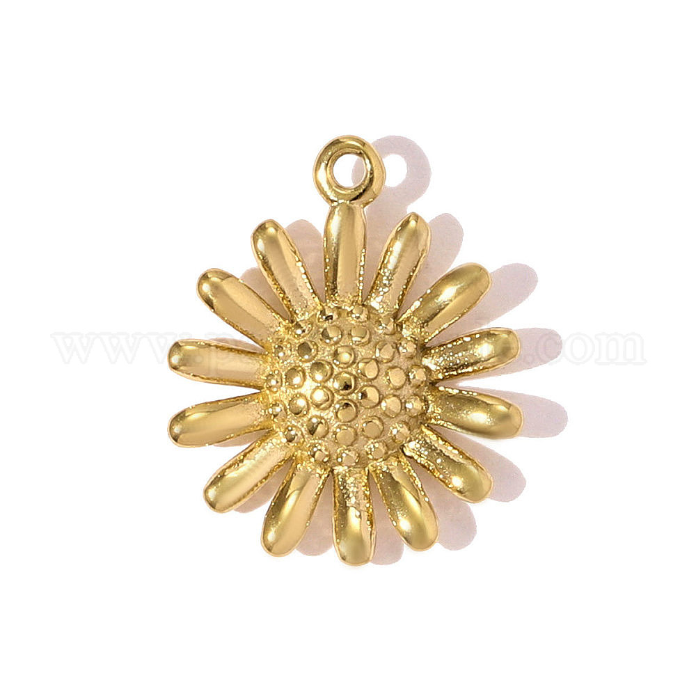 • Настоящее золото 18K 304 подвески из нержавеющей стали, прелести подсолнуха, ионное покрытие (ip), реальный 18 k позолоченный, 17x14 мм