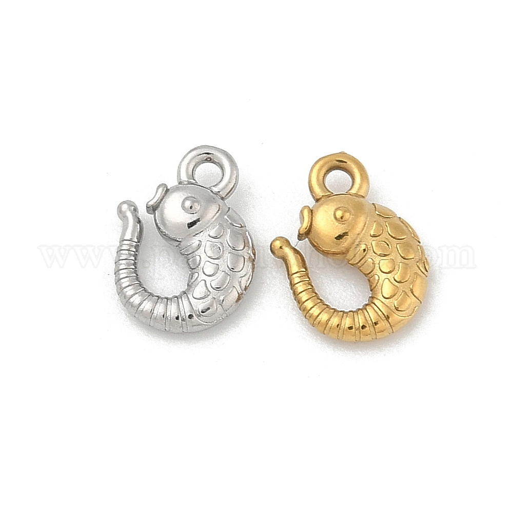 • Настоящее золото 18K 304 прелести нержавеющей стали, рыба, ионное покрытие (ip), реальный 18 k позолоченный, 9x6x2.5 мм, отверстие : 1 мм