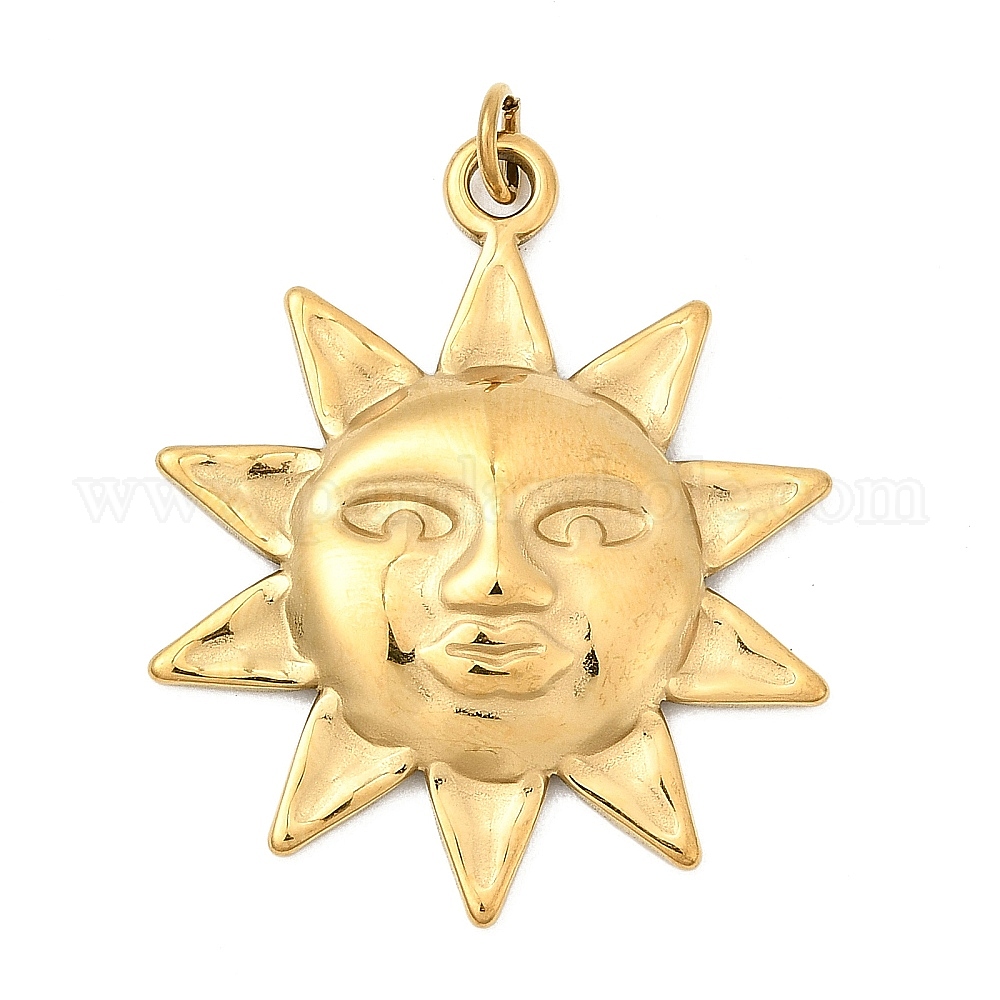 • Золотой 304 подвески из нержавеющей стали, очарование солнца, ионное покрытие (ip), с целью перехода в кольце, золотые, 33x27.5x3.5 мм, отверстие : 3.5 мм