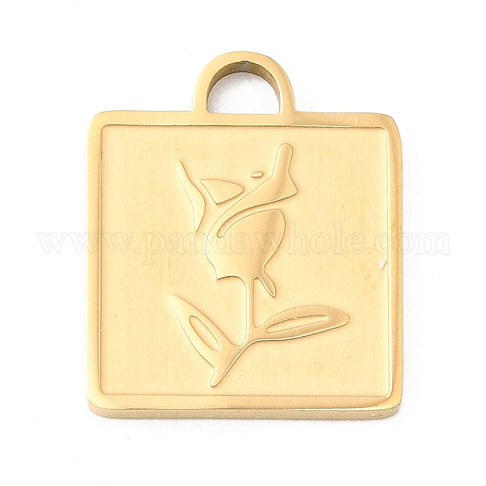 304 подвески из нержавеющей стали, квадрат с цветком розы, ионное покрытие (ip)