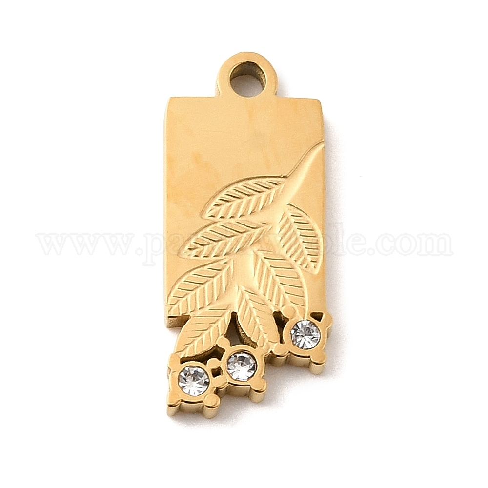 304 подвески из нержавеющей стали, лист прелести, со стразами, ионное покрытие (ip)