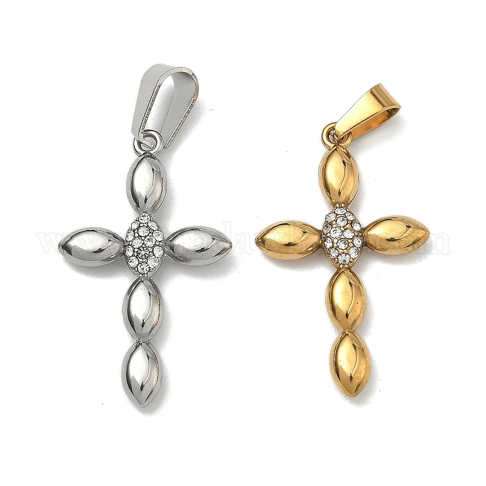 304 подвески из нержавеющей стали, со стразами, с кнопкой на поруки, крест прелести, ионное покрытие (ip) (039MM6)