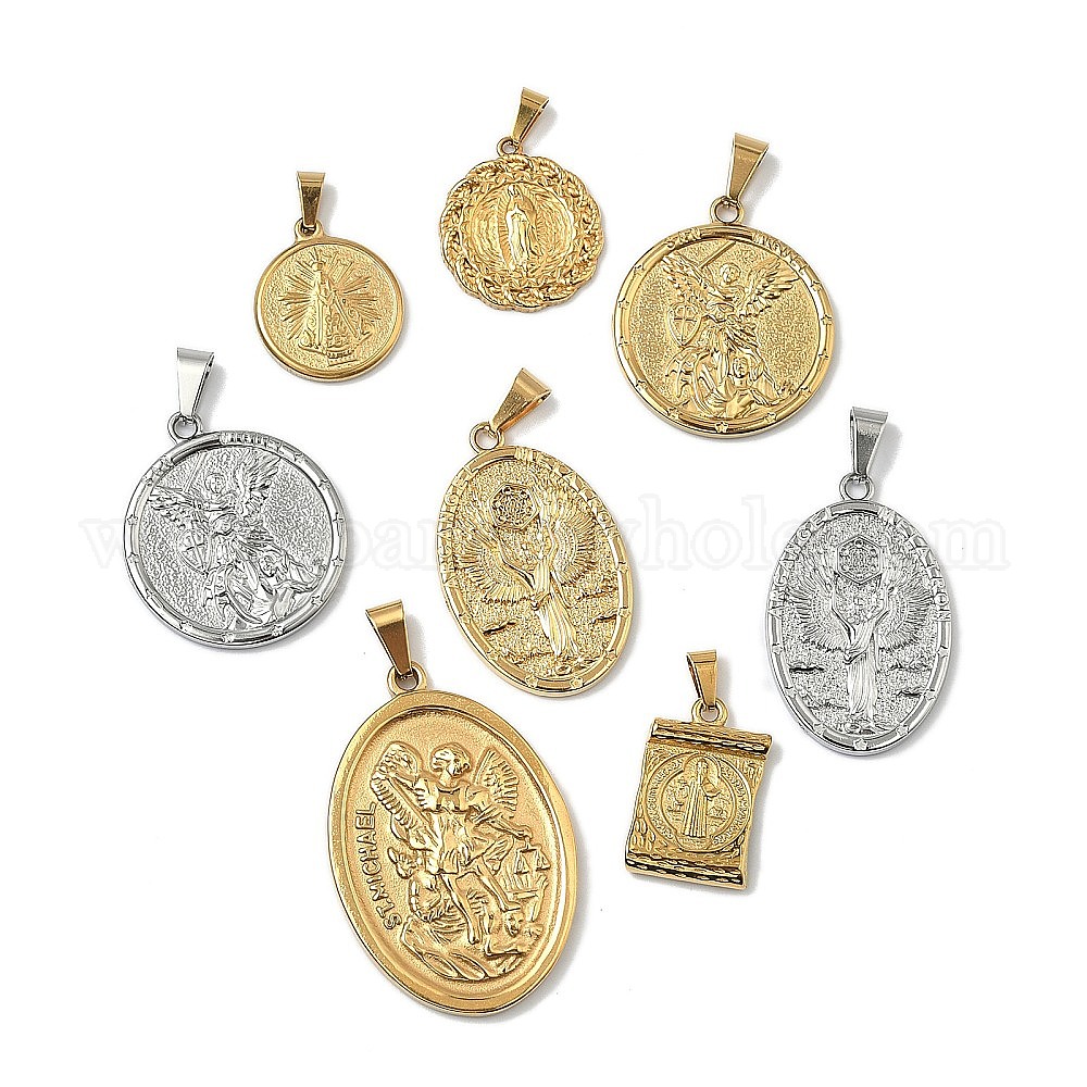 • Oval Религиозная тема 304 подвески из нержавеющей стали, с 201 защелкой из нержавеющей стали на поручнях, ионное покрытие (ip), золотые, Овальный со святым бенедиктом, 48.5x32x4 мм, отверстие : 7.5x4 мм