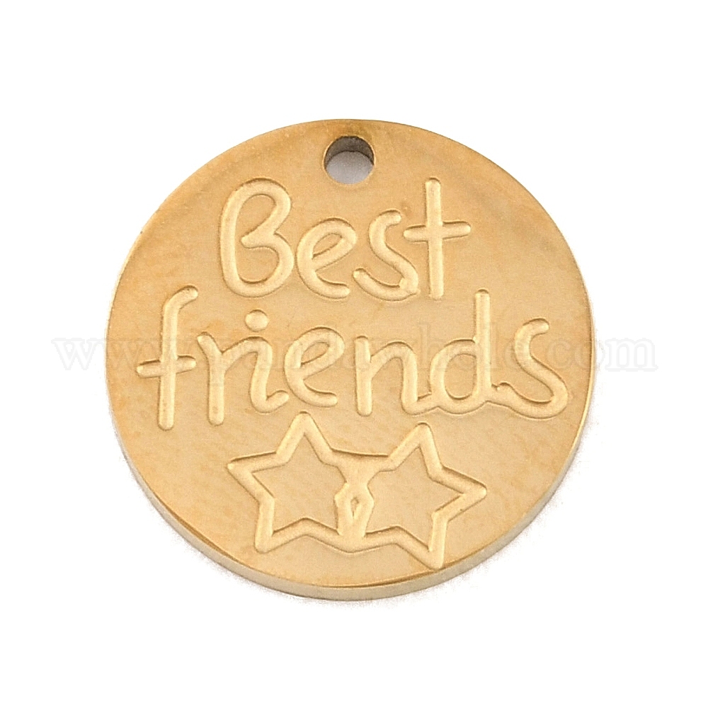 • Золотой 304 прелести нержавеющей стали, плоский круглый со словом лучшие друзья, золотые, 13x1.5 мм, отверстие : 1.2 мм