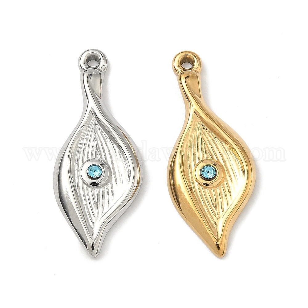 • Настоящее золото 18K 304 из нержавеющей стали горный хрусталь подвески, лист прелести, ионное покрытие (ip), реальный 18 k позолоченный, 27x11x3 мм, отверстие : 1.2 мм
