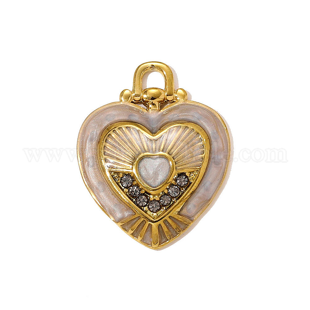 304 из нержавеющей стали горный хрусталь подвески, эмалевые сердечки, ионное покрытие (ip), зеркальная полировка, реальный 18 k позолоченный
