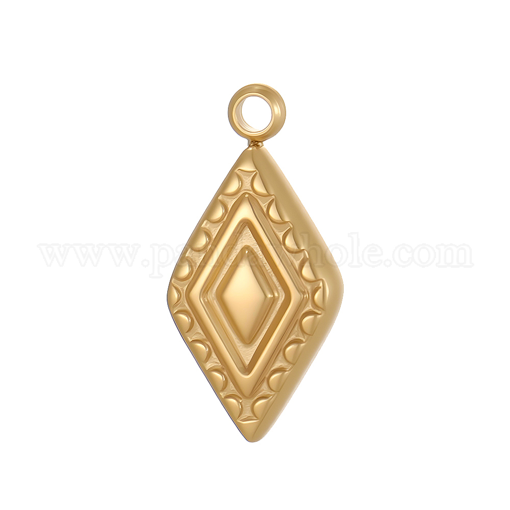 • Настоящее золото 14K 304 прелести нержавеющей стали, ромб, ионное покрытие (ip), реальный 14 k позолоченный, 11x6 мм