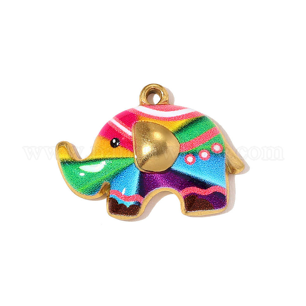 Печатные 304 подвески из нержавеющей стали, Слон прелести, ионное покрытие (ip), зеркальная полировка, красочный