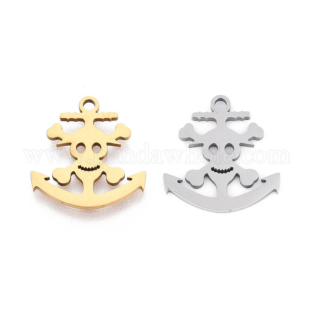 • Настоящее золото 18K 201 подвески из нержавеющей стали, Якорь и штурвал с подвесками в виде черепов, лазерная резка, реальный 18 k позолоченный, 17x15.5x1 мм, отверстие : 1.5 мм