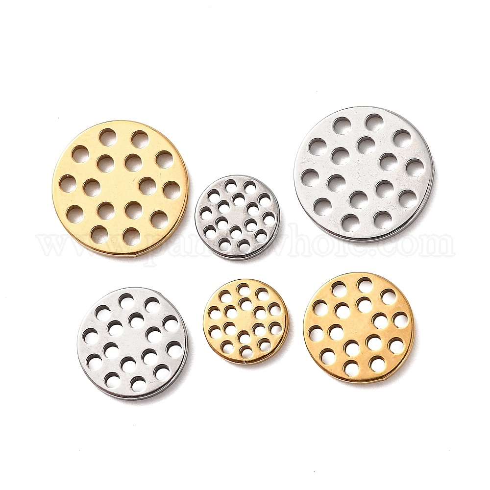 • Нержавеющая Сталь Цвет Полые 304 подвески из нержавеющей стали, плоско-круглые, цвет нержавеющей стали, 6x1 мм, отверстие : 0.6 мм